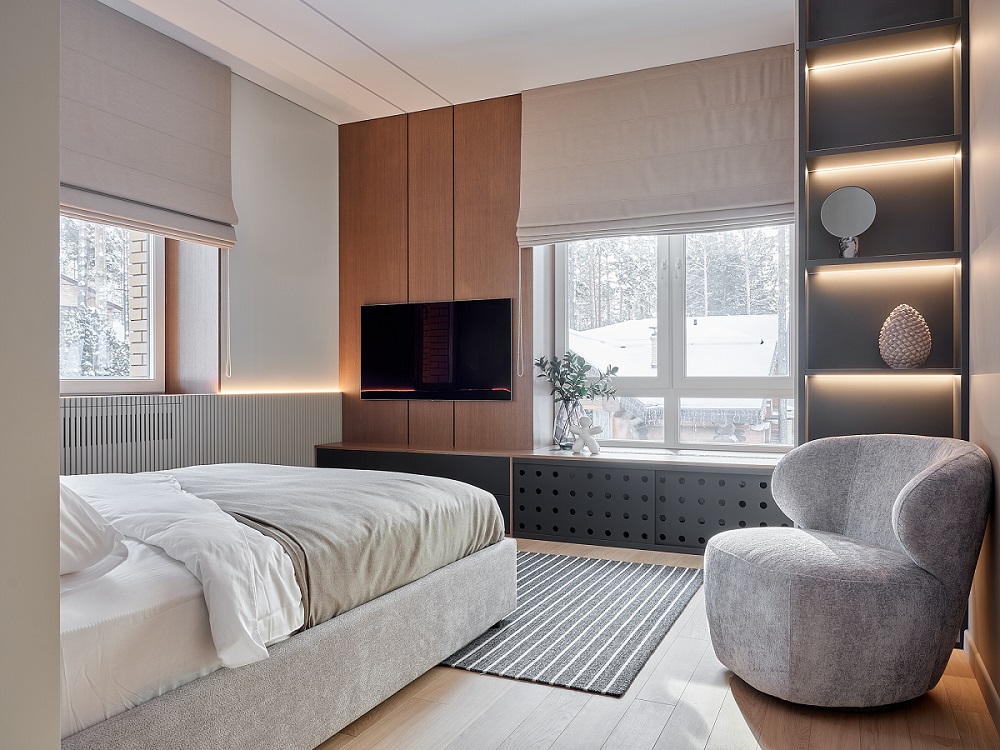 Палубная укладка разных по длине плашек из натурального дерева на прочной основе каменно-полимерного композита может быть выполнена по направлению света от окна (классический способ), перпендикулярно этому свету (если есть задача вытянуть комнату) или по диагонали.